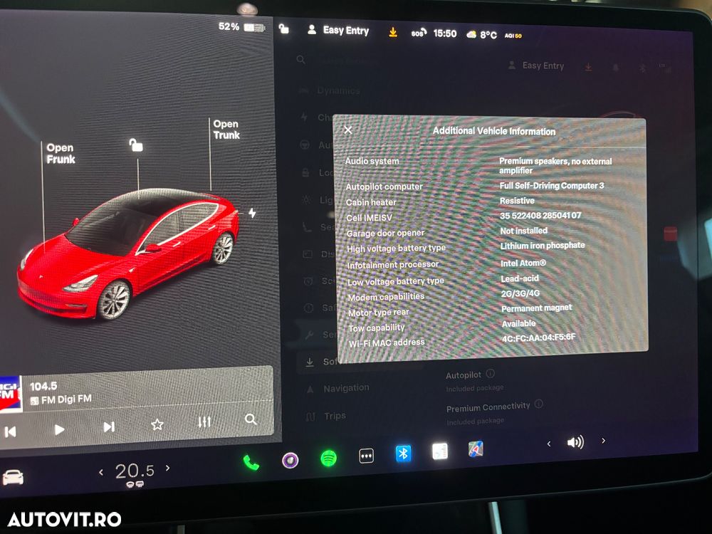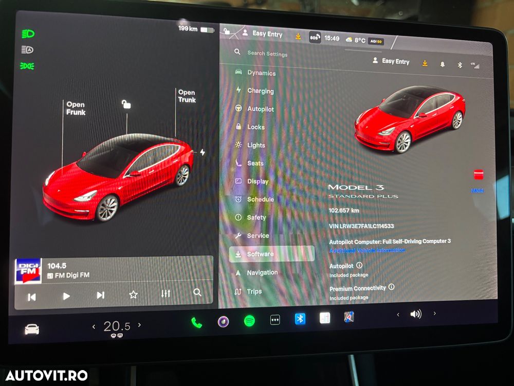 <p>Vand Tesla Model 3 SR Plus</p><p><br></p><p>Fabricatie - 12/2020</p><p>Baterie LFP, deci se poate incarca zilnic pana la 100%.</p><p>Sanatate baterie conform test - 94%</p><p>Autonomie afisata la 100% - 382km</p><p>Km actuali: 107325 in crestere, adusa din Olanda la 98750km</p><p><br></p><p>Masina este in stare foarte buna atat optic cat si tehnic, mici defecte specifice unei masini de varsta ei.</p><p><br></p><p>Adus din Olanda pe roti, fara probleme de incarcare si rulare.</p><p><br></p><p>Cateva din dotari:</p><p><br></p><p>Full Self Driving 3</p><p>Autopilot inclus</p><p>Conectivitate Premium</p><p>Optiune tractare, cu carlig inclus</p><p>Anvelope iarna</p><p>Jante sport pe 19”</p><p>Keyless entry</p><p>Keyless go</p><p>Culoare Premium</p><p>Etc</p><p><br></p><p>In rest, dotarile standard ca pe orice Tesla SR, desigur, totul functional.</p><p><br></p><p>Garantie baterie si motor pana la 160.000 km sau 12/2028 la Tesla</p><p><br></p><p>RAR efectuat</p><p>Inmatriculata</p><p>Se vinde cu toate actele necesare transcrierii</p><p>TVA nedeductibil</p><p><br></p><p>Pentru alte detalii, nu ezitati sa ma contactati.</p><p><br></p><p>NU schimb, doar Vand</p>