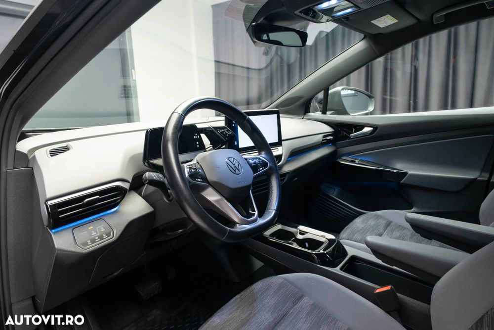 <p><u><b>Volkswagen ID.4 City – 125 kW – 52 kWh net – Manganese Grey Metallic</b></u></p><p><br></p><p>✔ Motor electric 125 kW (170 CP)</p><p>✔ Cuplu 310 Nm</p><p>✔ Baterie 55 kWh brut / 52 kWh net</p><p>✔ Autonomie reală foarte bună pentru utilizare zilnică</p><p>✔ Încărcare AC 7.2 kW</p><p>✔ Încărcare rapidă DC până la 100 kW</p><p>✔ CCS + cablu Type 2 inclus</p><p>✔ Pompă de căldură (consum optim iarna)</p><p><br></p><p><u><b>Dotări principale:</b></u></p><p><br></p><p>Faruri și stopuri LED</p><p>Jante aliaj “Falun” 18” (235/60 R18)</p><p>Încălzire în scaunele față</p><p>Volan multifuncțional îmbrăcat în piele, încălzit</p><p>Climatizare automată 2 zone Air Care Climatronic</p><p>Parbriz încălzit (fără rezistențe vizibile)</p><p>Oglinzi electrice, rabatabile și încălzite</p><p>Ambient interior 10 culori</p><p>Sistem multimedia "Ready 2 Discover" + Navigație "Discover Pro"</p><p>Apple CarPlay & Android Auto wireless</p><p>Încărcare telefon prin inducție</p><p>6+1 difuzoare</p><p>DAB+</p><p>Selecție profil condus</p><p>Consolă centrală modulară</p><p>Sisteme siguranță & asistență:</p><p>Adaptive Cruise Control ACC Stop&Go</p><p>Front Assist cu frânare automată și detectare pietoni/cicliști</p><p>Lane Assist (menținere bandă)</p><p>Dynamic Road Sign Display</p><p>Park Distance Control față/spate</p><p>Driver Alert System</p><p>Airbag-uri frontale, laterale, cortină + airbag central</p><p>ISOFIX inclusiv i-Size</p><p>eCall</p><p><br></p><p>✔ Service interval 2 ani (fără limită km – vehicul electric)</p><p>✔ Cutie automată (1 treaptă – electric)</p><p>✔ Culoare: Manganese Grey Metallic</p>